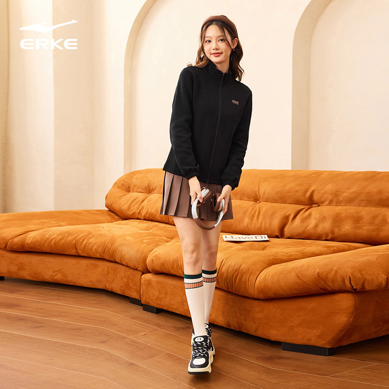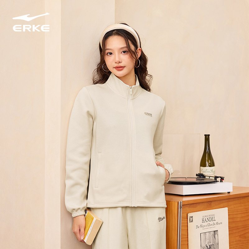 鸿星尔克外套女2025秋季新款女士立领针织夹克运动服开衫卫衣女装