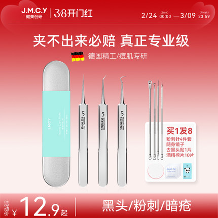 健美创研超细细胞夹粉刺针套装去黑头镊子美容院专用挑挤痘痘工具