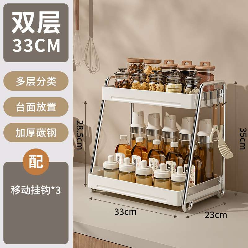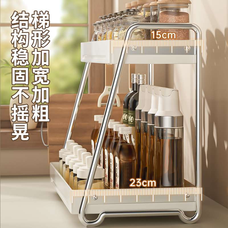 不锈钢厨房调料架双层家用台面调味品置物架多功能盐调味罐收纳架