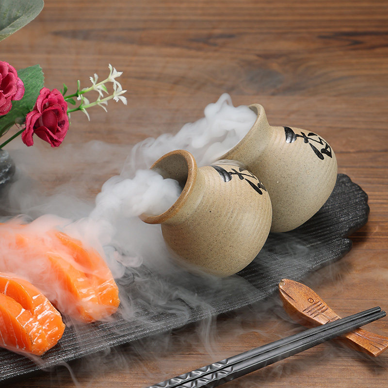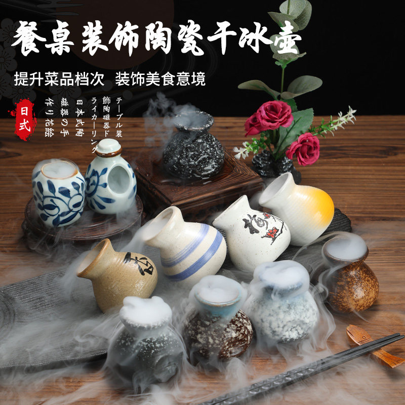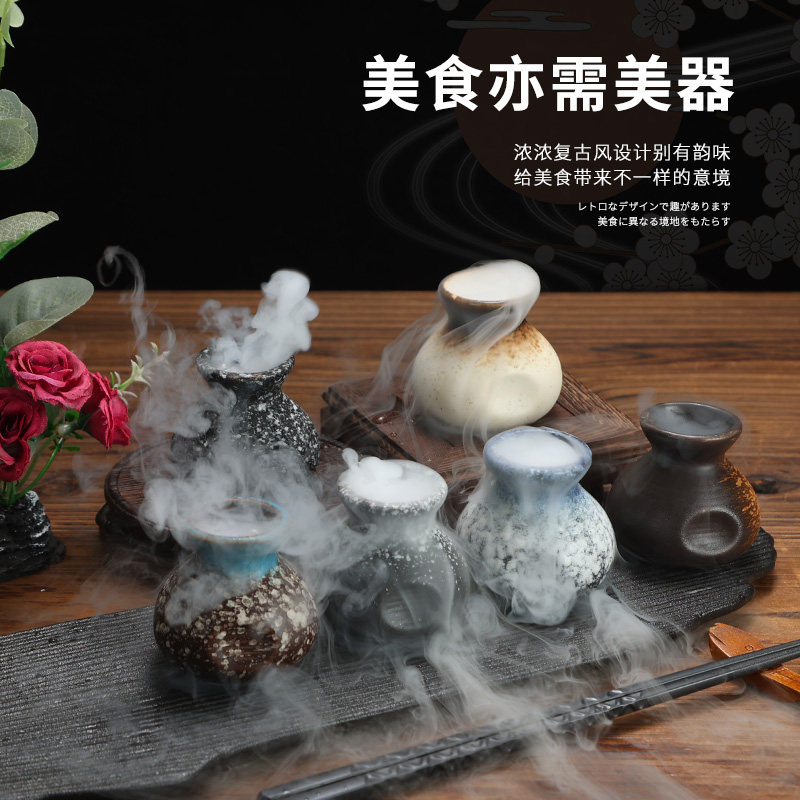 干冰小壶杯海鲜冷菜烧烤火锅烤肉日料创意盘饰摆件陶瓷干冰罐杯瓶