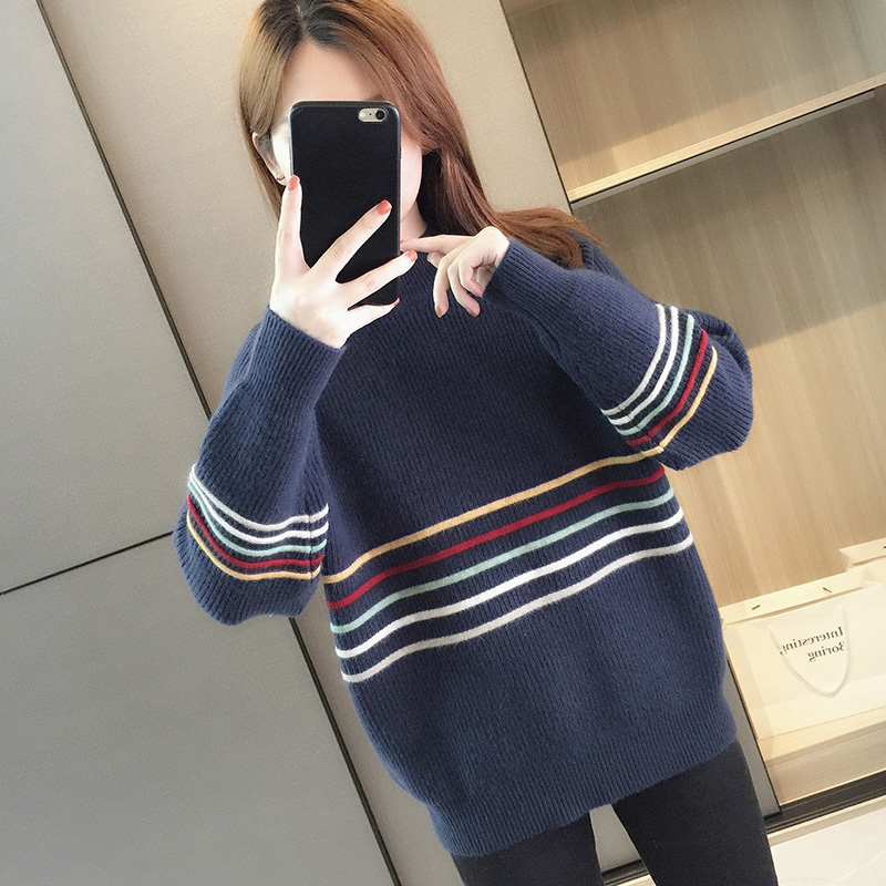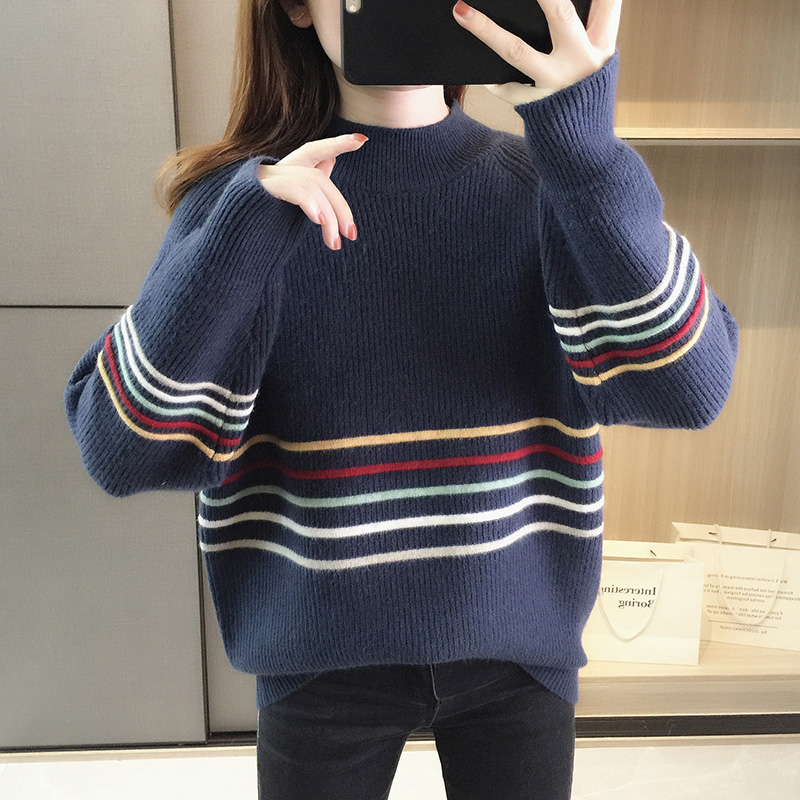 半高领套头毛衣女士秋冬季新款女装日系加厚打底衫宽松上衣针织衫