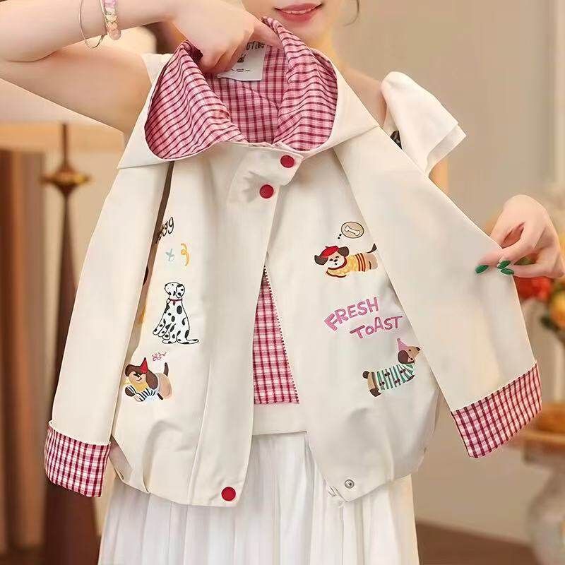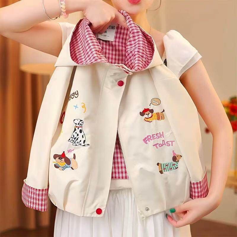 女童早秋外套2025新款儿童洋气卡通连帽上衣女孩春秋款冲锋衣
