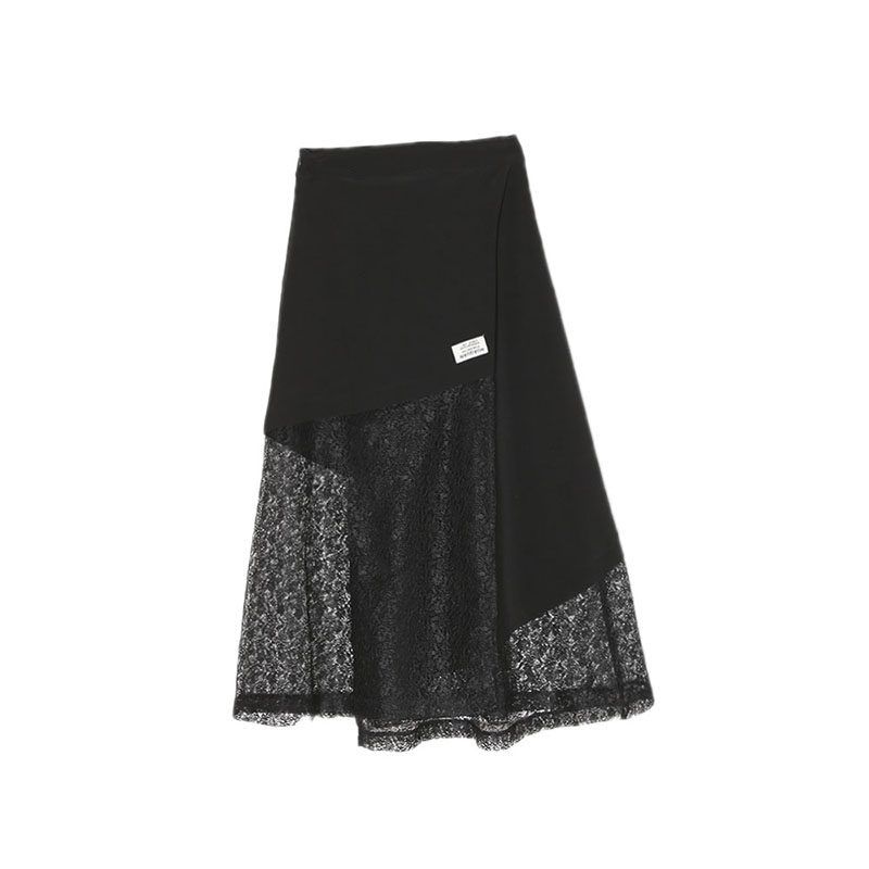 蕾丝拼接不规则开叉露腿半身裙