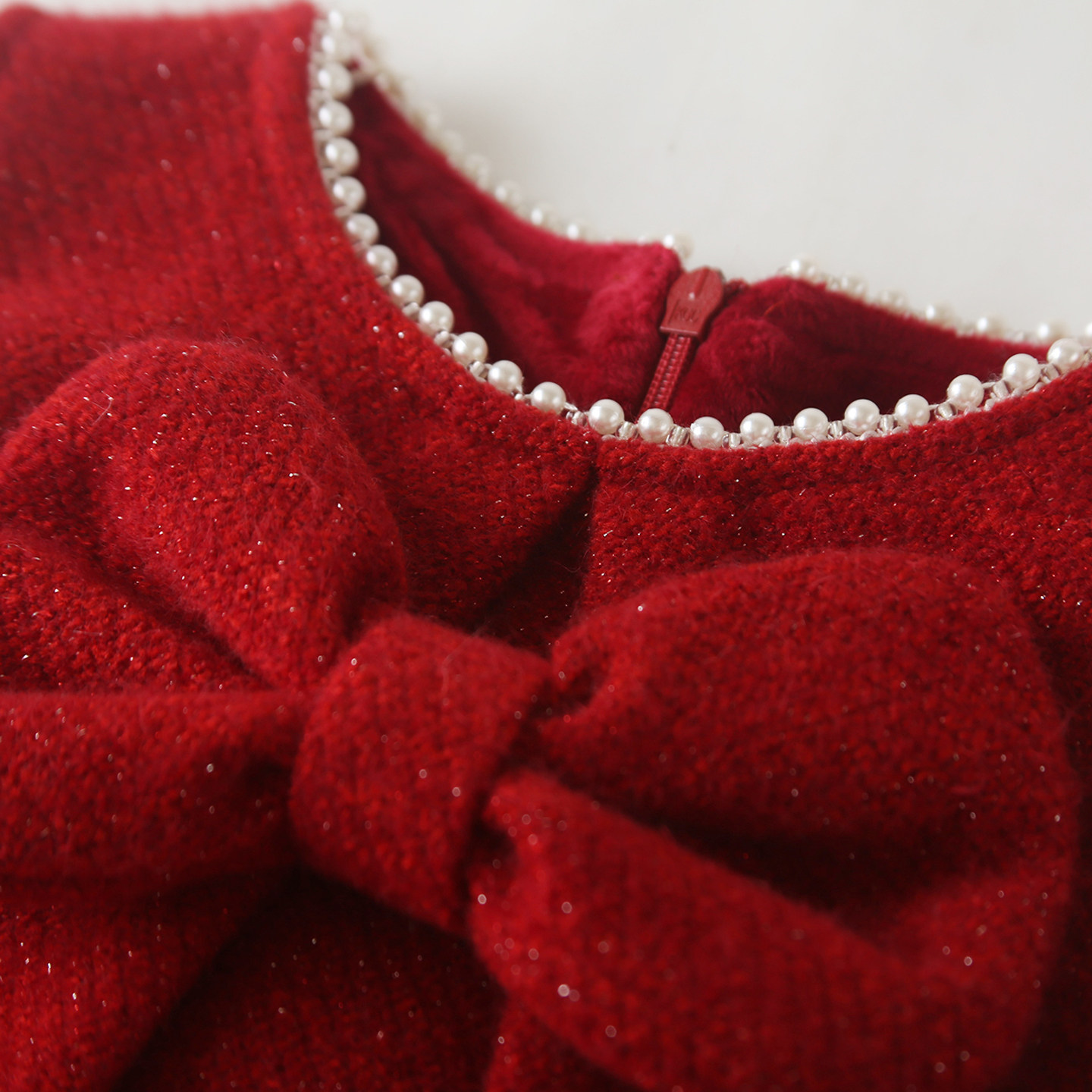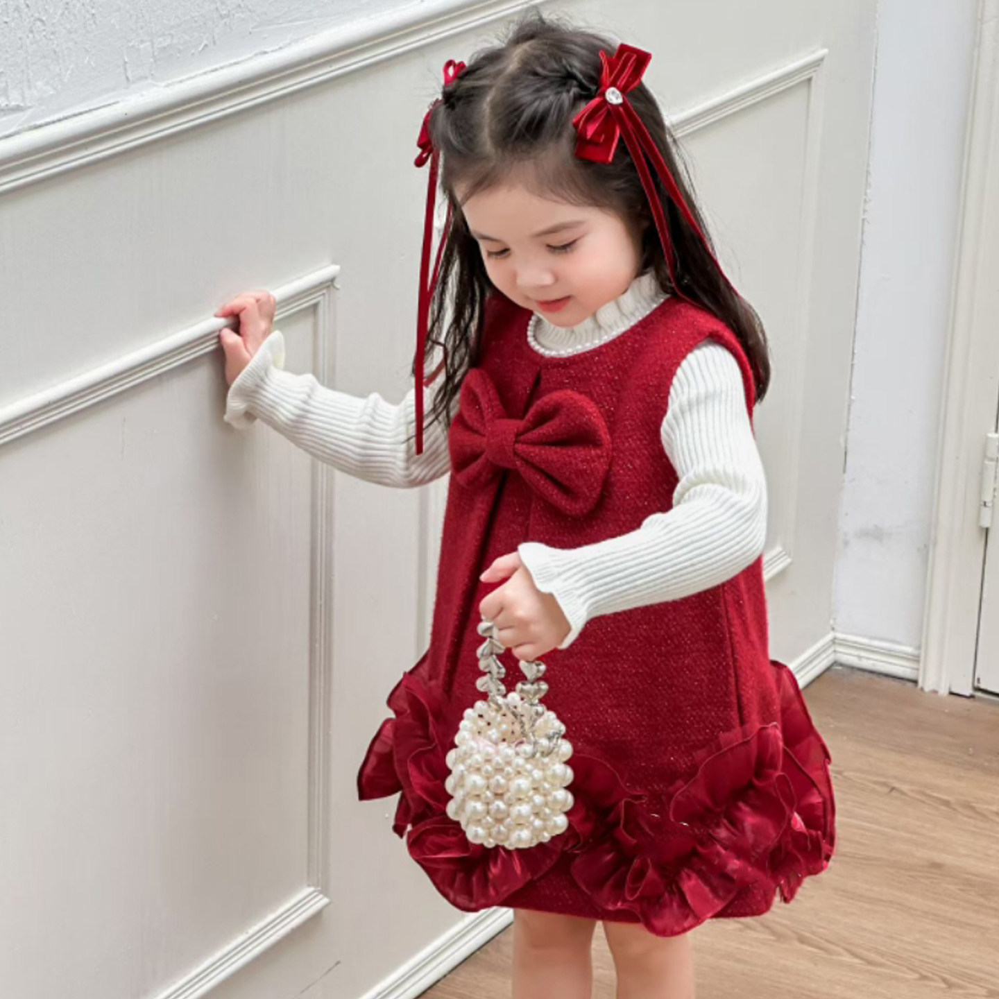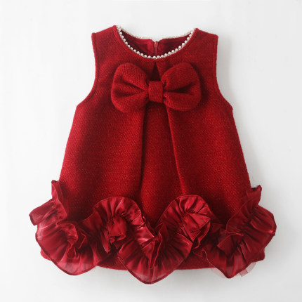 女童背心裙秋冬季红色蝴蝶结
