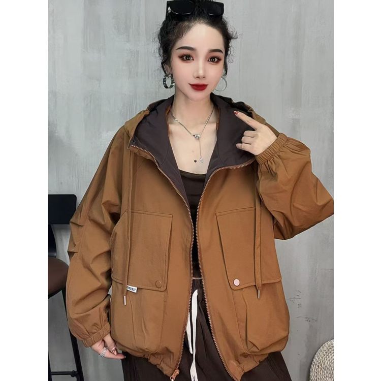 紫色浪漫气质短款冲锋衣外套2025秋冬季新款大码女装宽松显瘦风衣