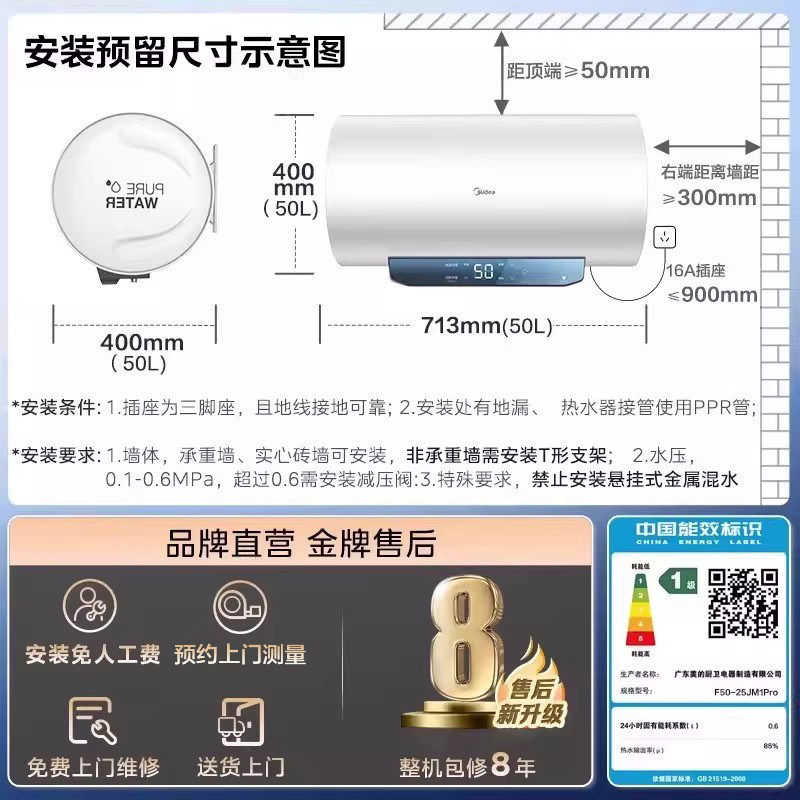 美的电热水器JM1PRO家用一级能效