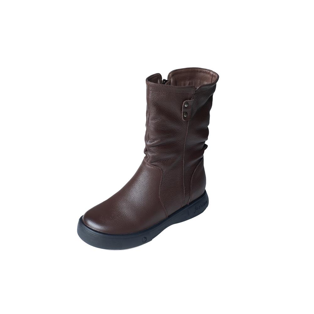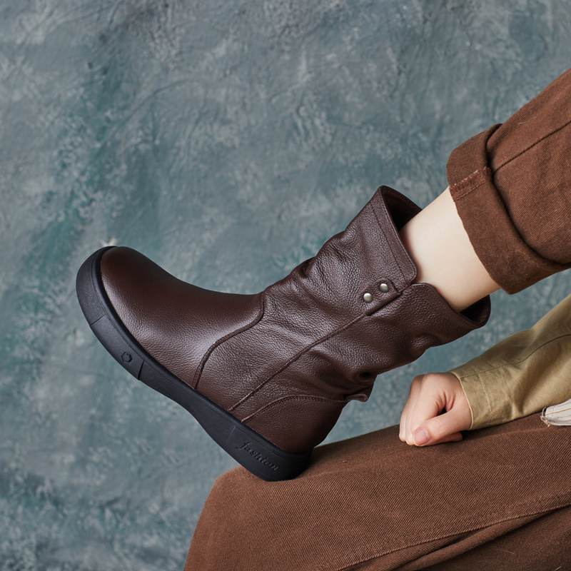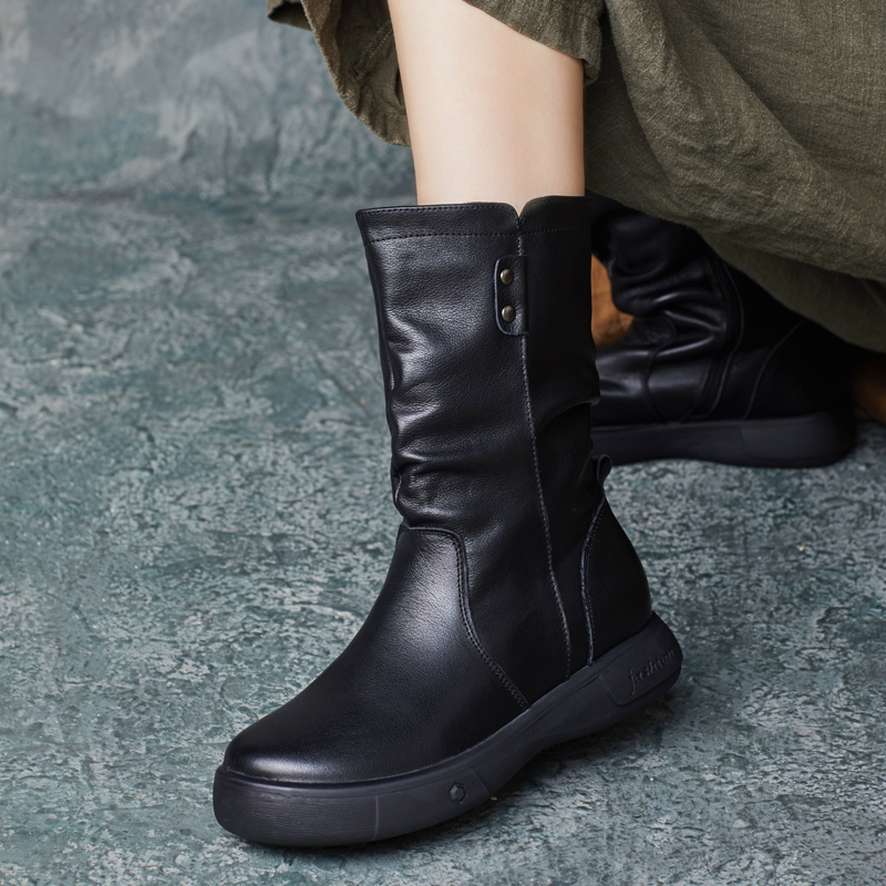 2025秋冬新款英伦风手工真皮圆头中筒靴保暖加绒短靴软底马丁靴子