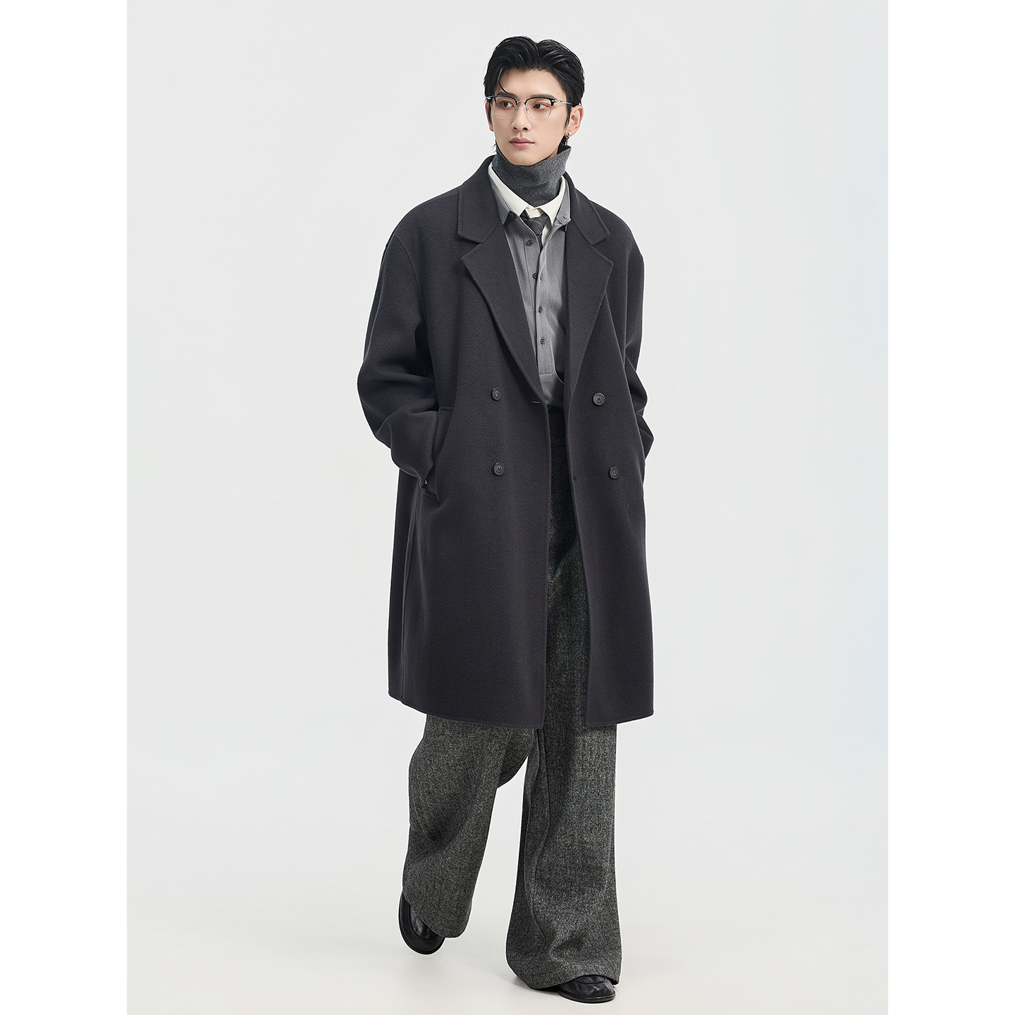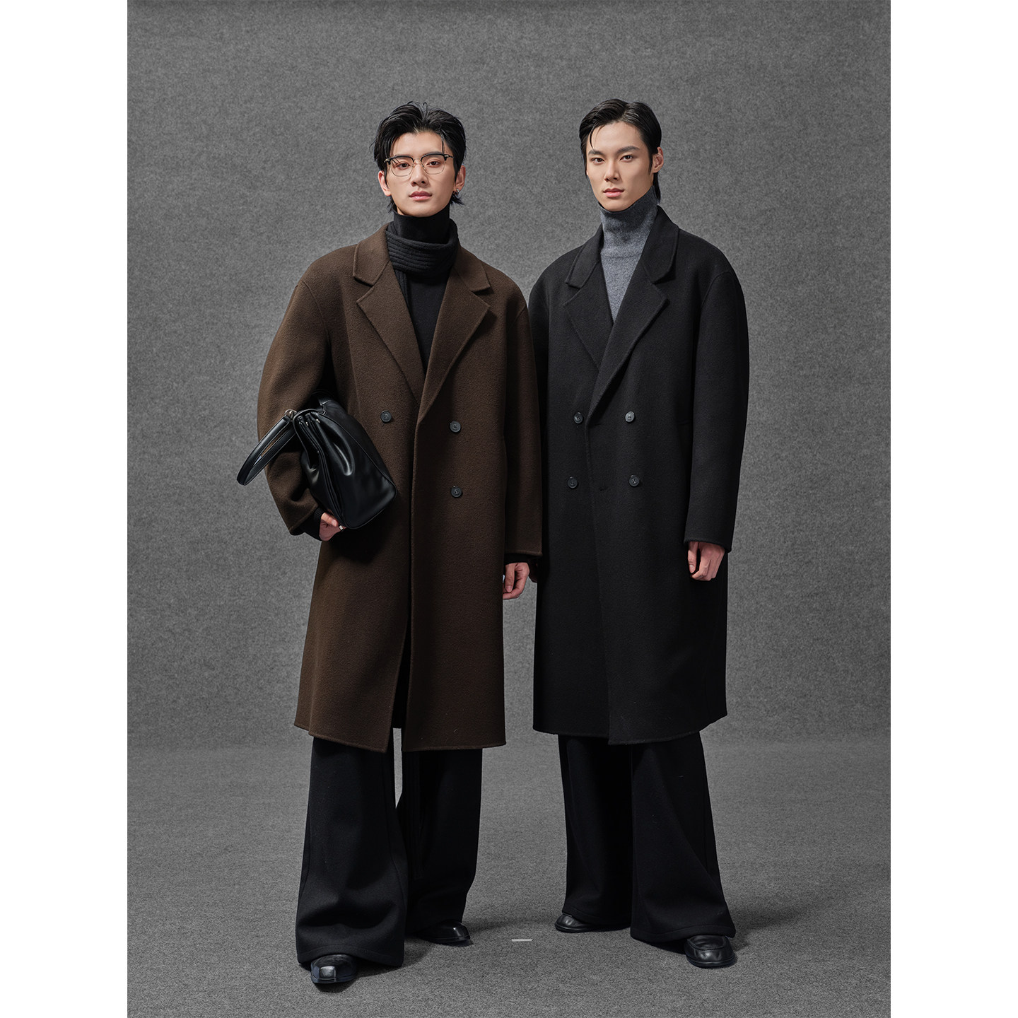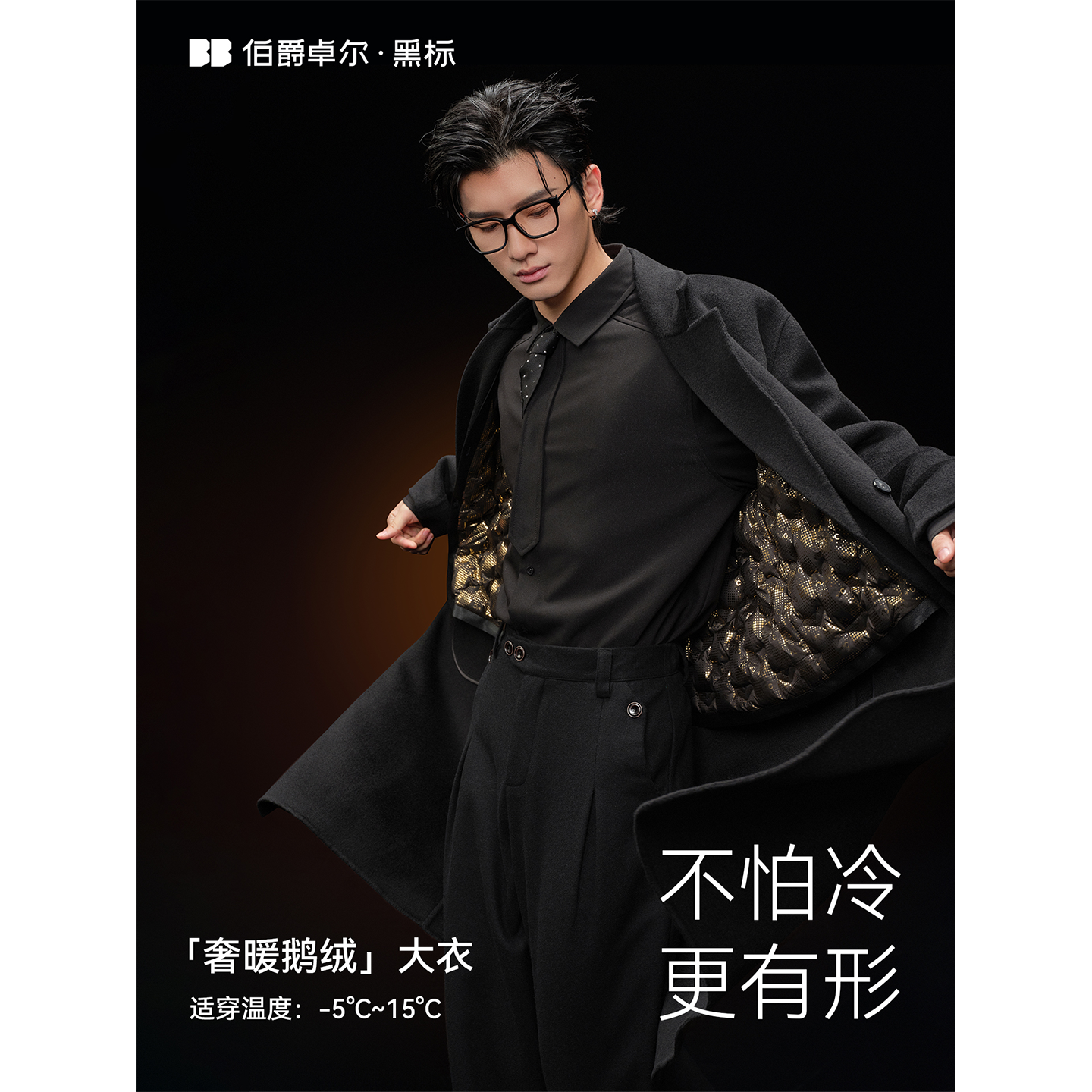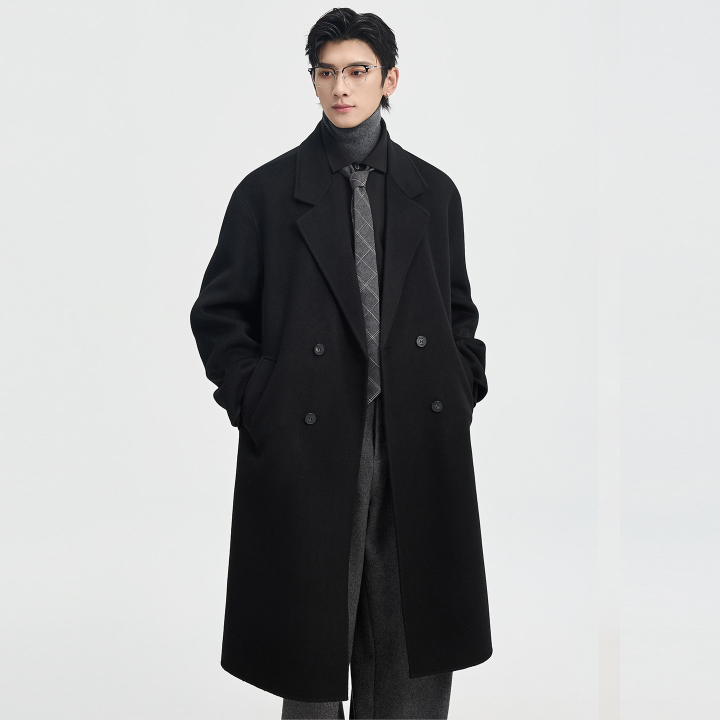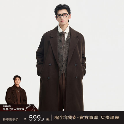 伯爵卓尔100%全羊毛双面呢大衣男士中长款可拆卸鹅绒内胆冬季外套