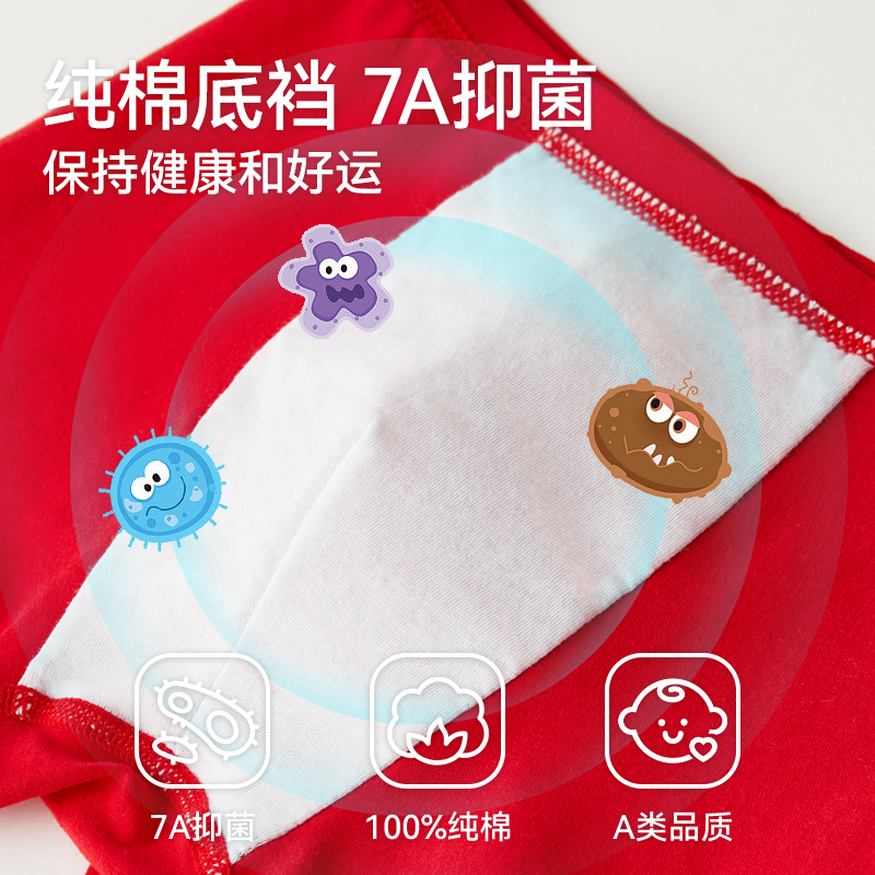 红豆男童本命年红色内裤纯棉男孩新年三角裤大童平角短裤抗菌