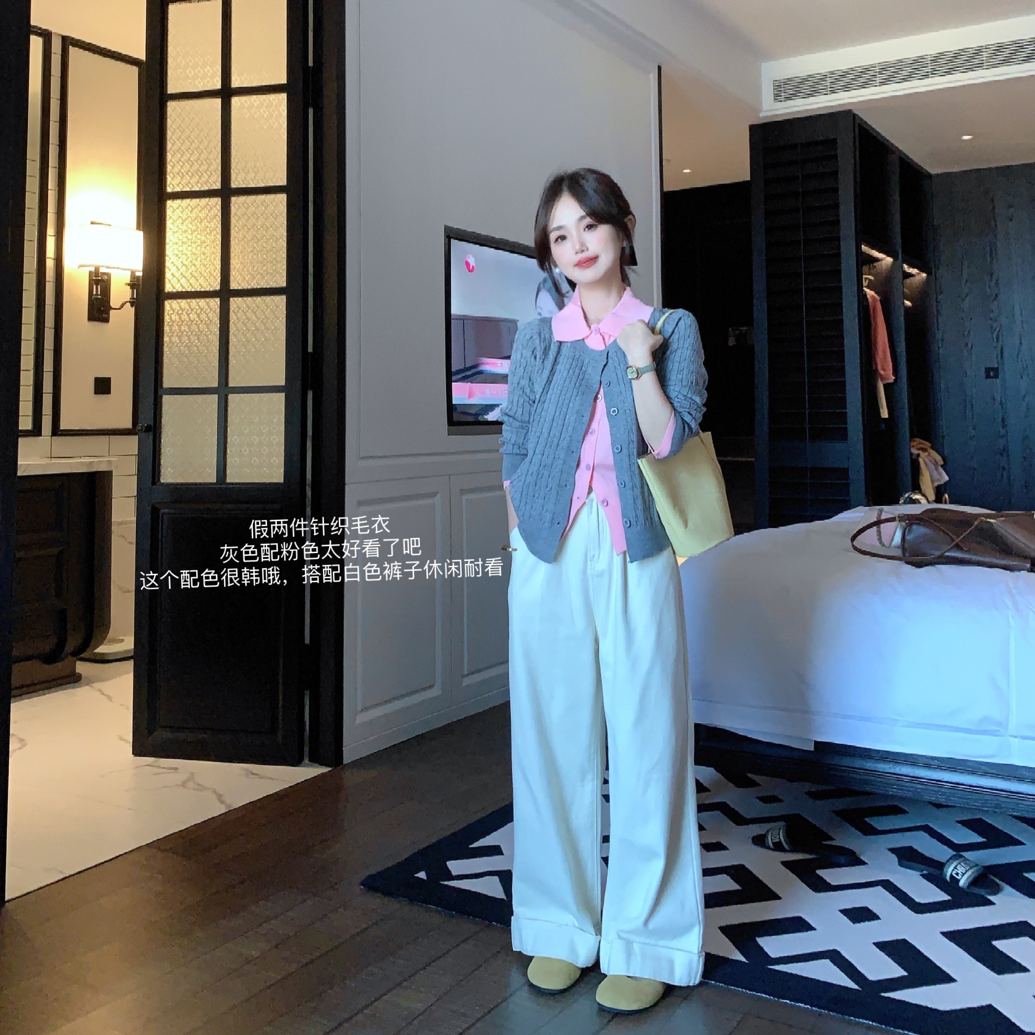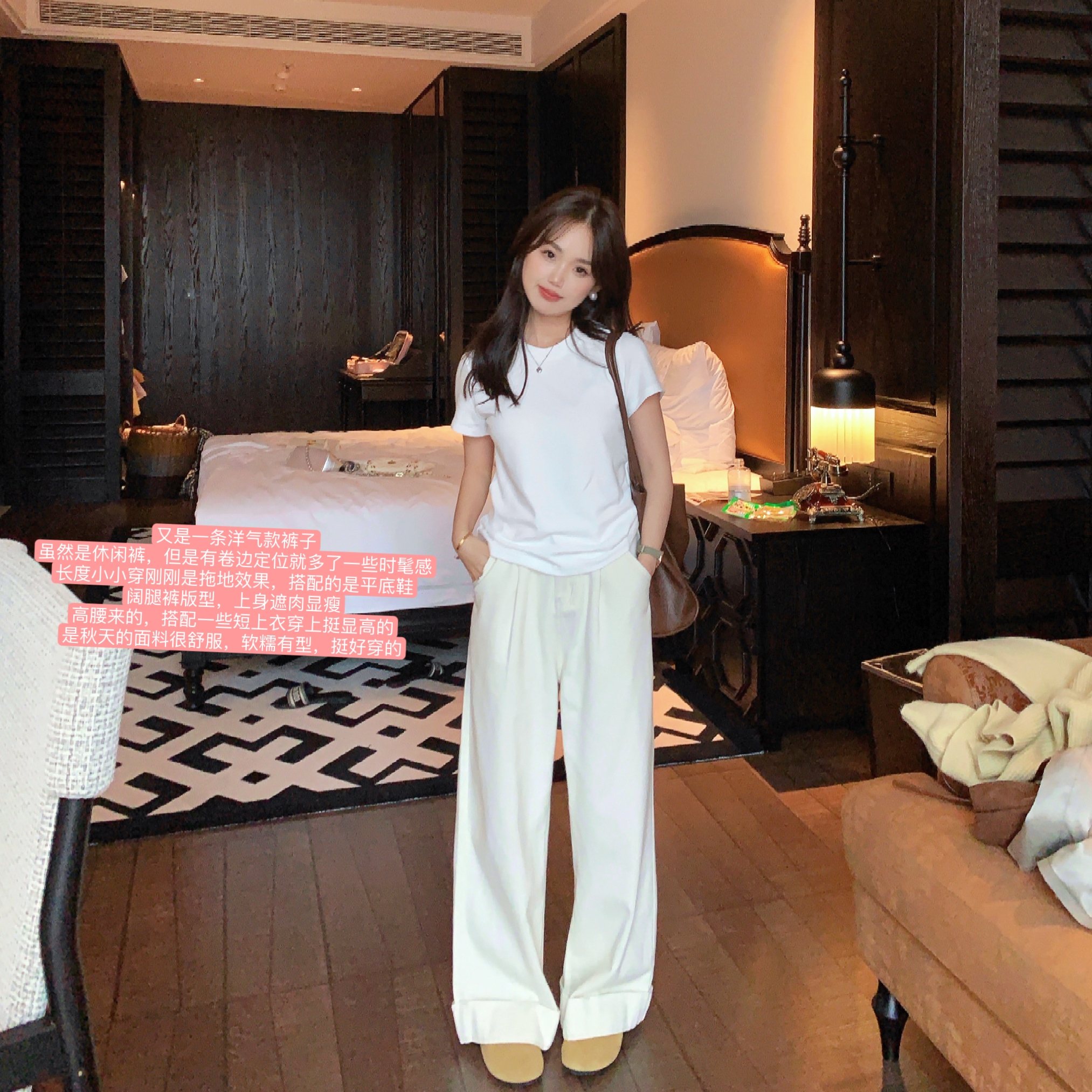 小小家( 松弛时髦裤子)小码直筒阔腿卷边牛仔裤显瘦高拖地长裤
