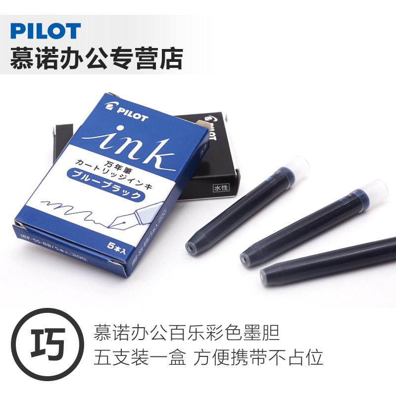 日本PILOT百乐钢笔彩色墨囊5支装 学生用蓝色红色黑色贵妃钢笔78G钢笔Kakuno笑脸钢笔墨胆一次性墨水囊
