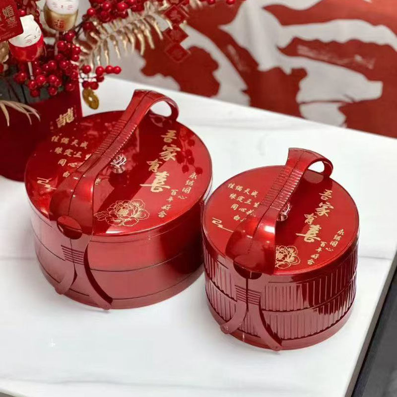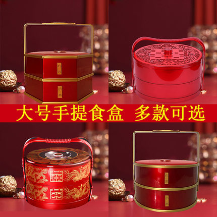 结婚手提食盒饺子盒婚庆双层果盒手提饭盒分格糕点盒子回礼提篮