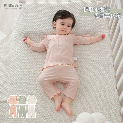 莫代尔无骨婴儿衣服宝宝家居服套装女童长袖睡衣夏季薄款分体儿童