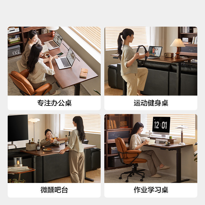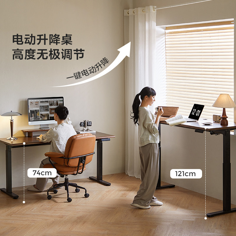 林氏家居实木电动升降桌电脑桌