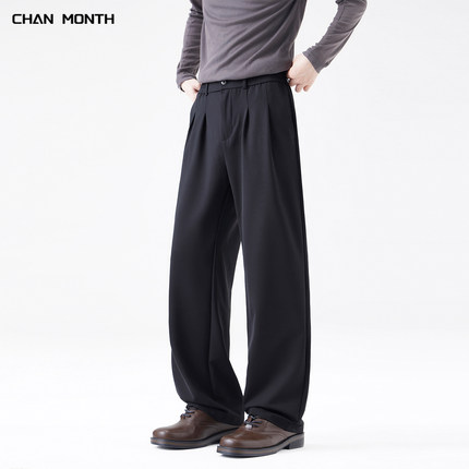 CHAN MONTH春季高级感黑色休闲西裤男宽松通勤垂感直筒百搭长裤子