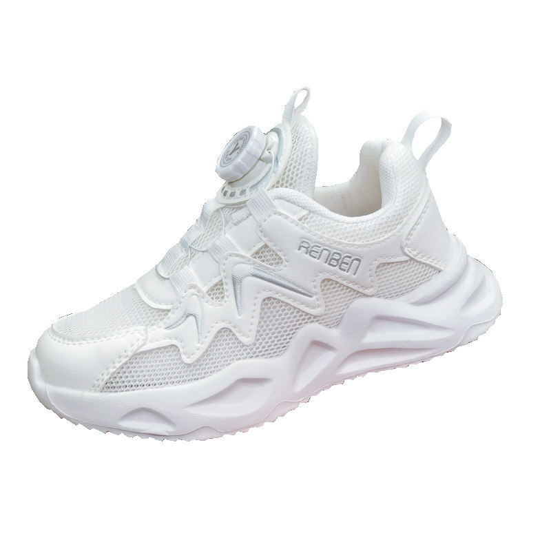 人本童鞋2025夏季超轻便运动按钮网鞋小学生透气网面小白鞋单层网