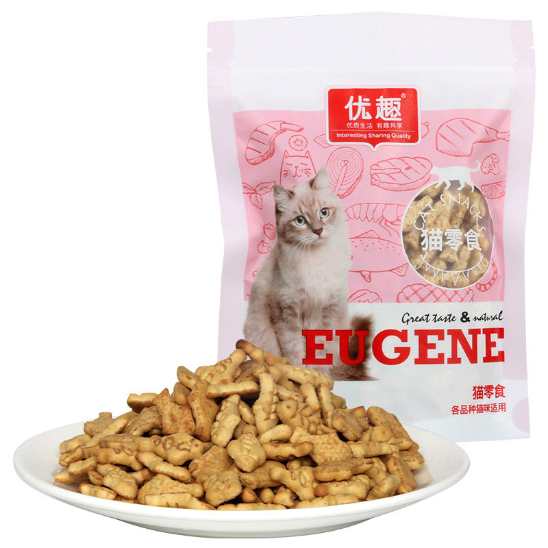 拍3免1 优趣三文鱼味鱼形猫饼干 鸡肉猫草金枪鱼肉味猫零食100g