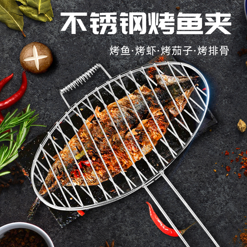 速发锈鱼夹烤不烤钢子夹烤鱼架子烧烤网夹板圆形烧烤用具商用大号
