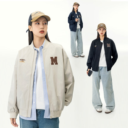 日系街头宽松飞行服立领夹克男2025春季情侣棒球领工装休闲外套女