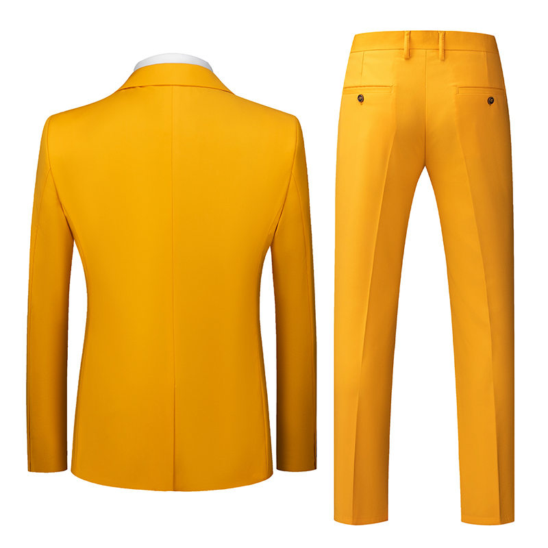特价新款男士西服套装正装婚礼两粒扣黄色两件套工装单西外套西裤