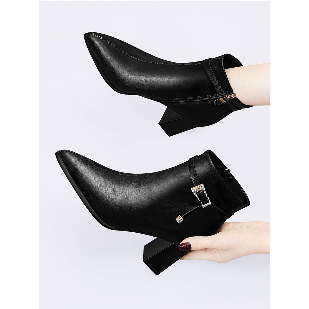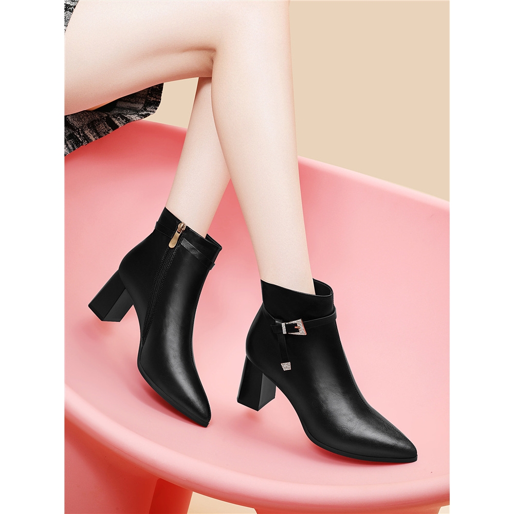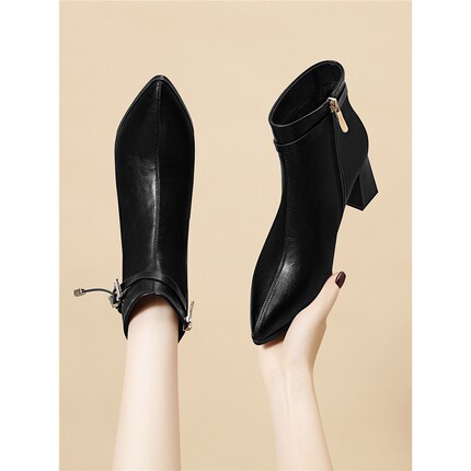 妈妈鞋子棉鞋女软皮软底秋冬短靴女士靴子中跟加绒皮鞋中老年女鞋
