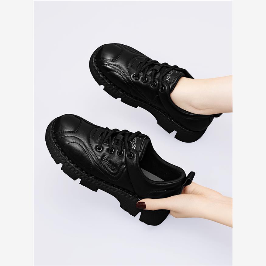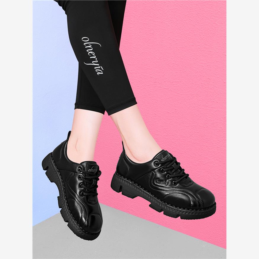 品牌真皮黑色乐福鞋女2025新款春秋单鞋厚底软底休闲小皮鞋工作鞋