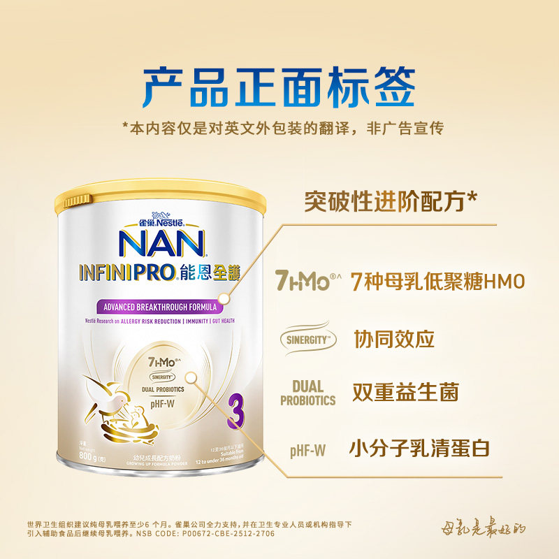 Nestle NAN雀巢能恩全护3段800g 7HMO适度水解蛋白婴幼儿奶粉