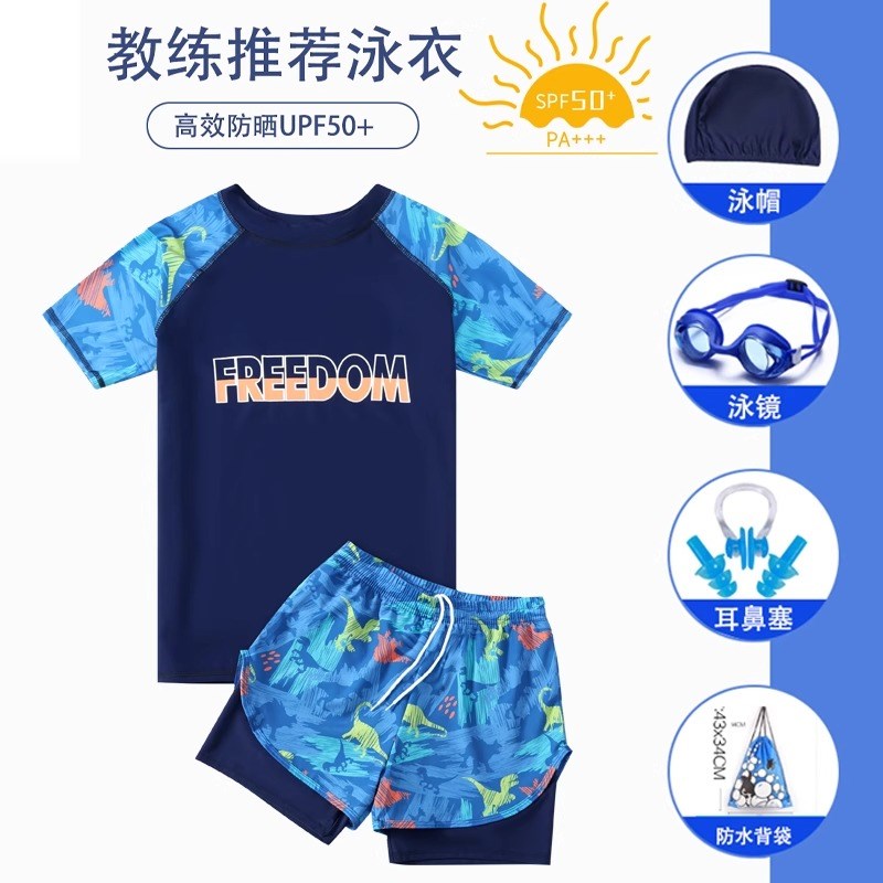 儿童游泳衣男童分体2025新款爆款中大童专业防晒训练泳裤男孩泳装