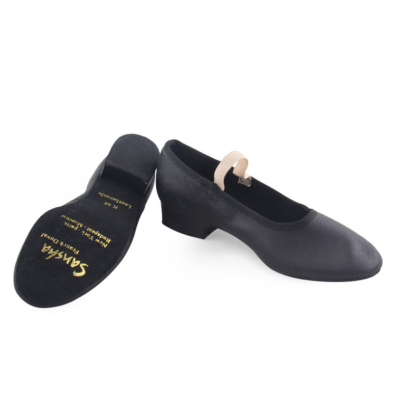 三沙儿童舞蹈鞋性格舞鞋sansha真皮代表性鞋软鞋教师鞋芭蕾黑跟鞋