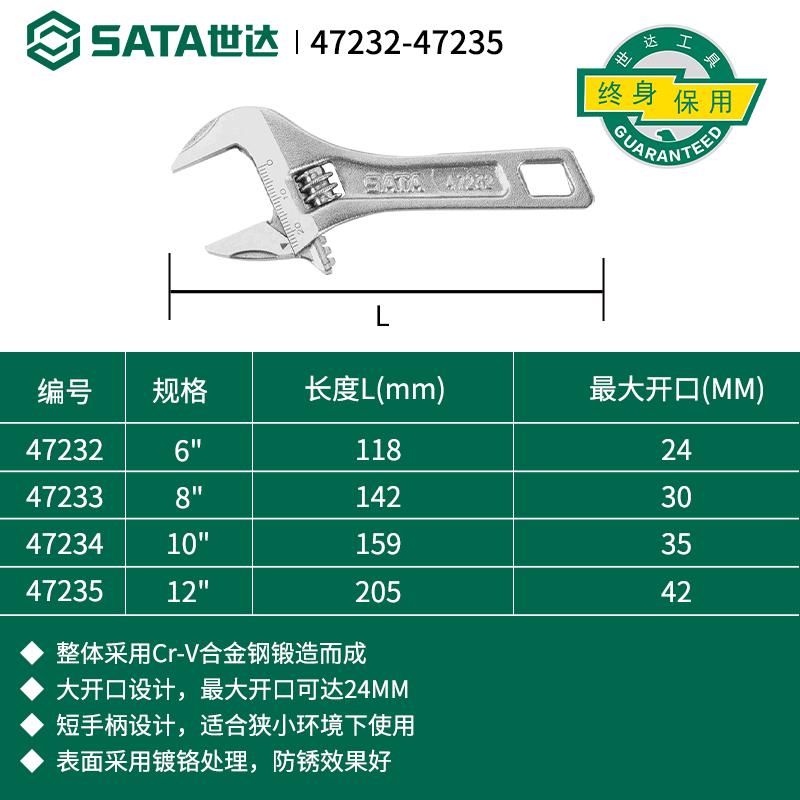 世达大开口短柄活动扳手47232-47235