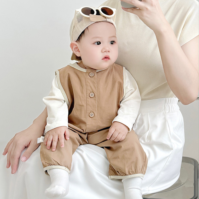 宝宝春秋套装婴幼儿背带裤连体衣新款洋气爬服长袖T恤韩版两件套