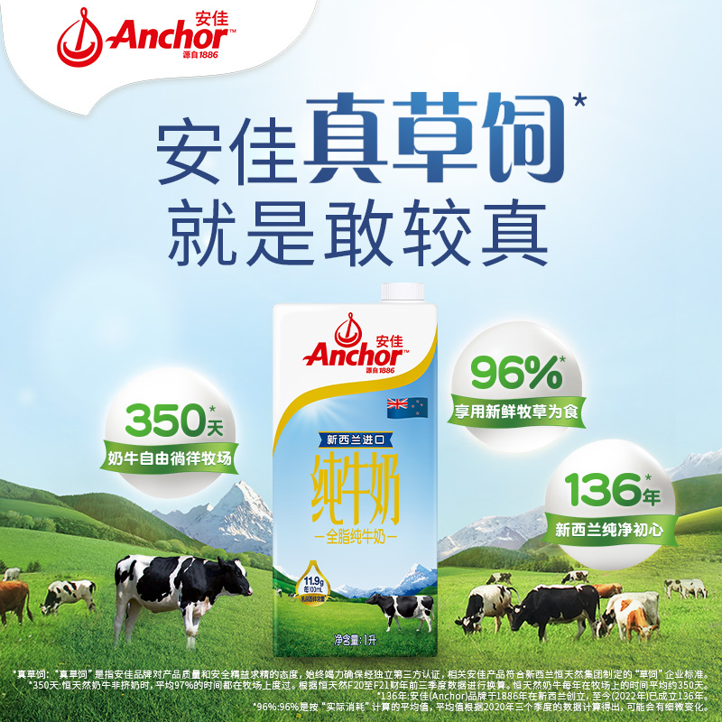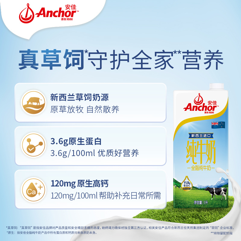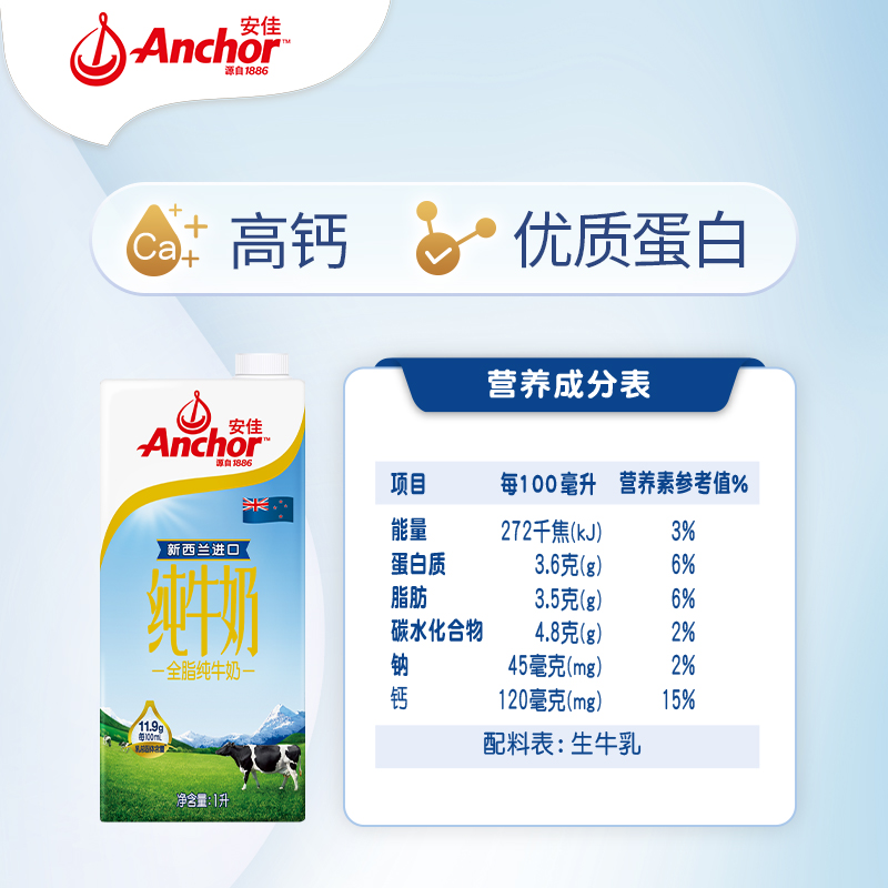 【进口】安佳全脂纯牛奶3.6g蛋白质新西兰进口草饲全家营养早餐奶