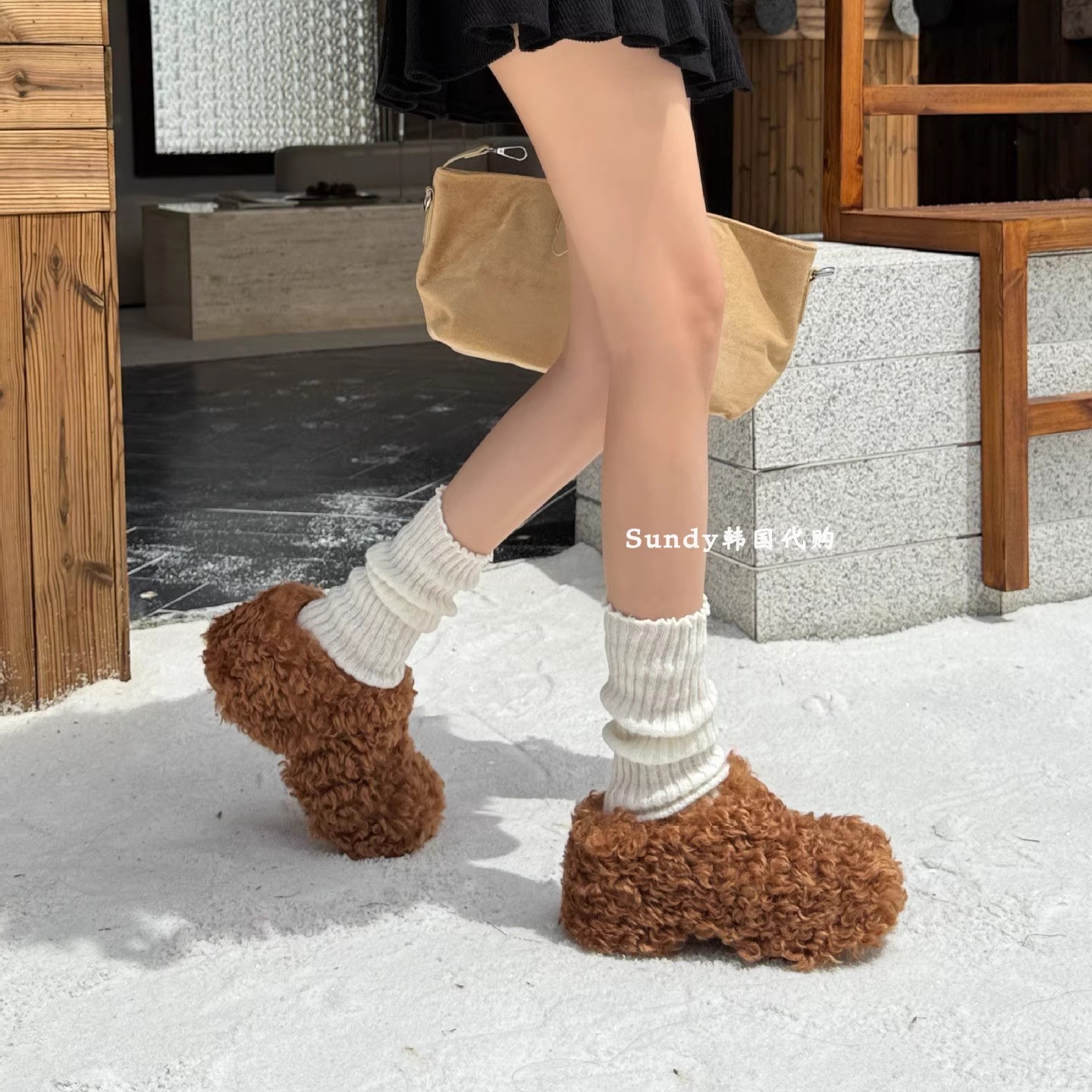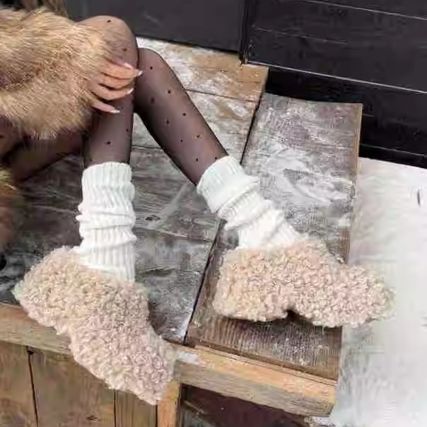 韩国东大门代购羊羔毛毛半拖鞋