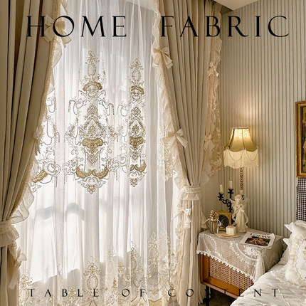 巴洛克 法式洛可可奶油复古高级感重工刺绣蝴蝶结荷叶边遮光窗帘