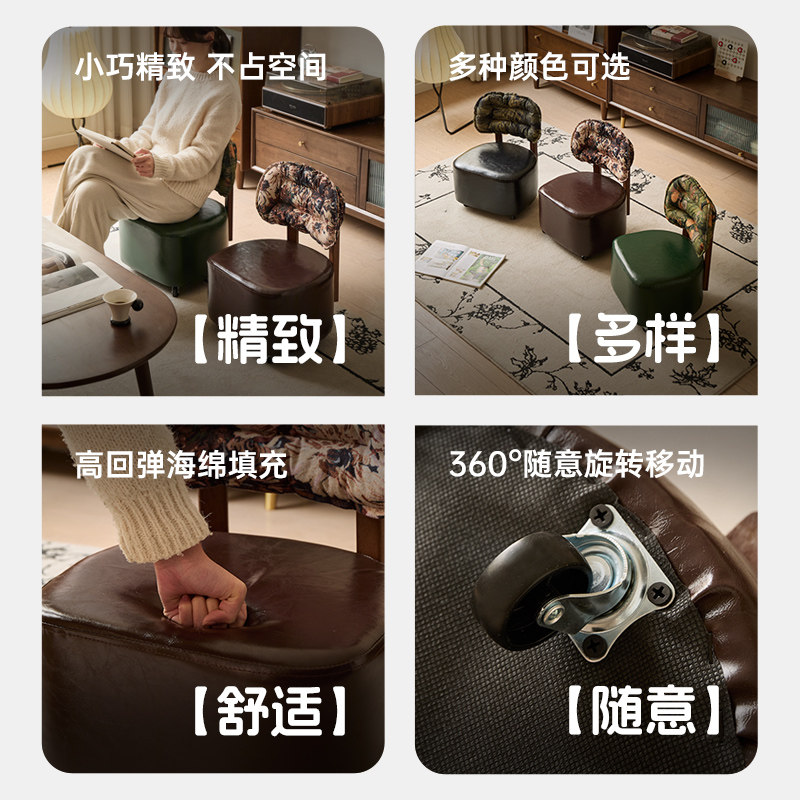 实木溜溜凳家用客厅万向轮沙发凳滑轮凳子换鞋凳矮凳休闲靠背椅子