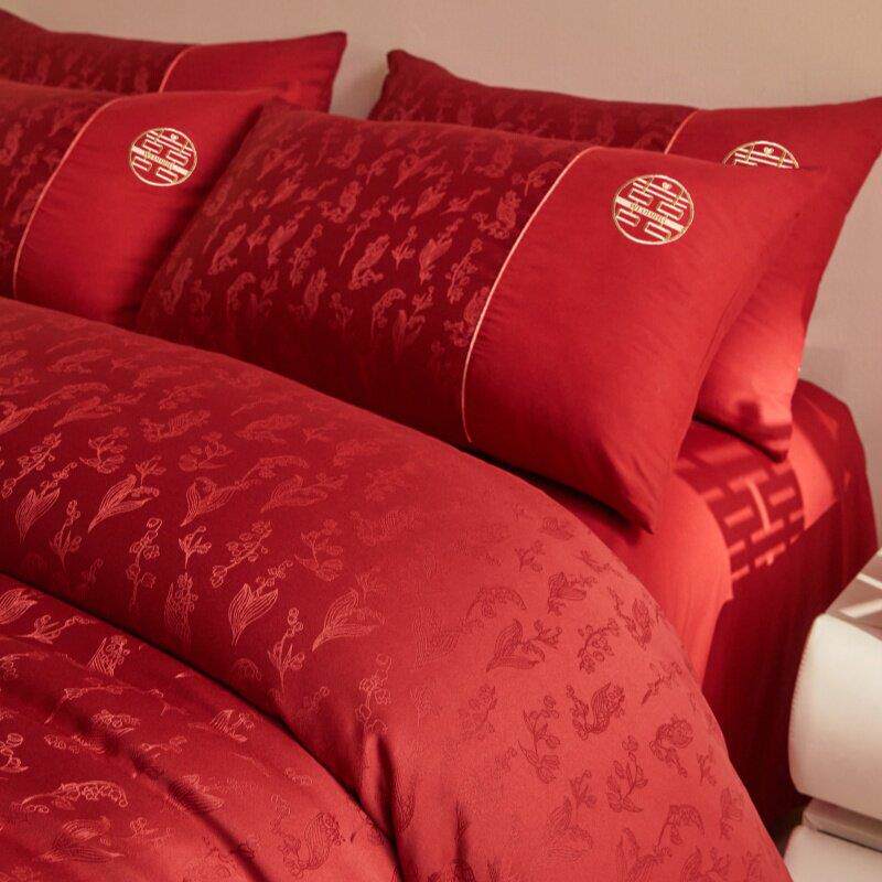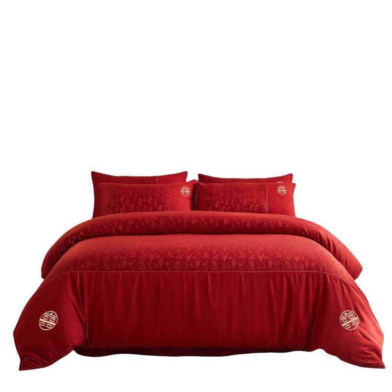 高档中式结婚四件套大红色床单被套新婚喜被婚庆床上用品婚房陪嫁