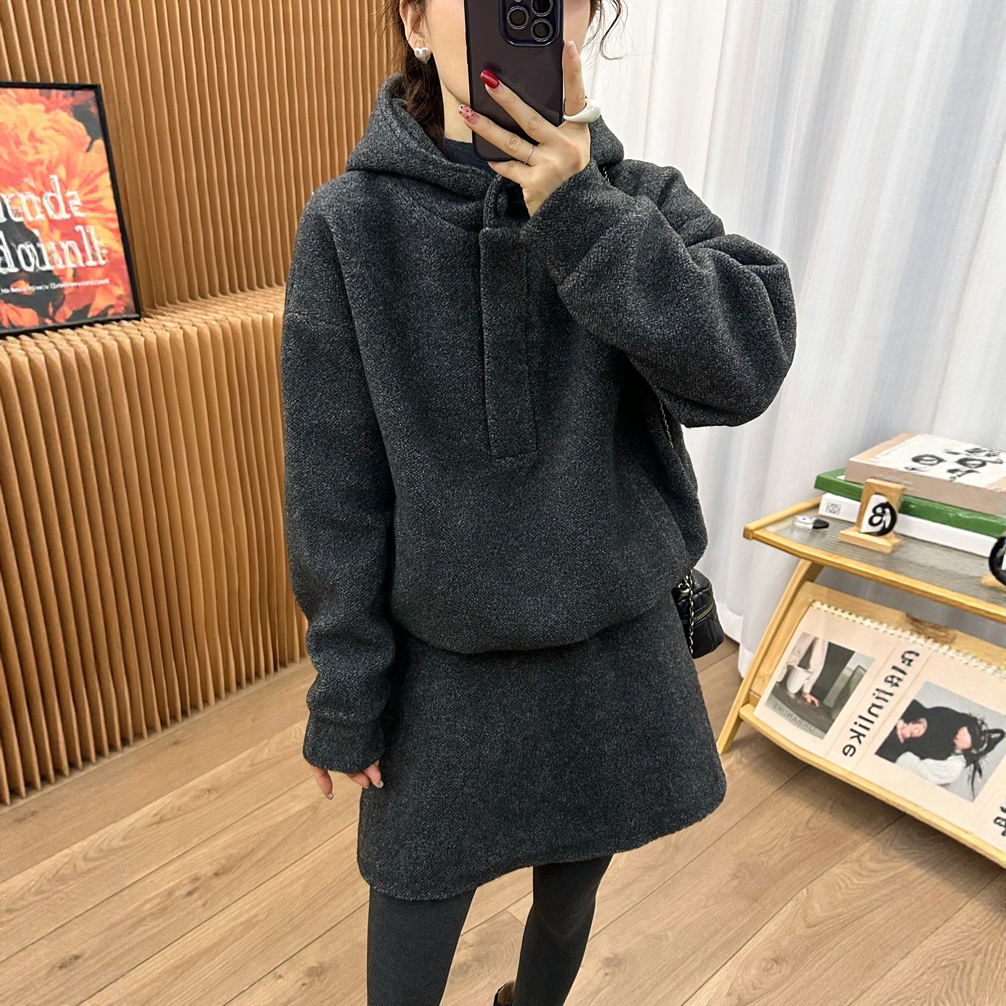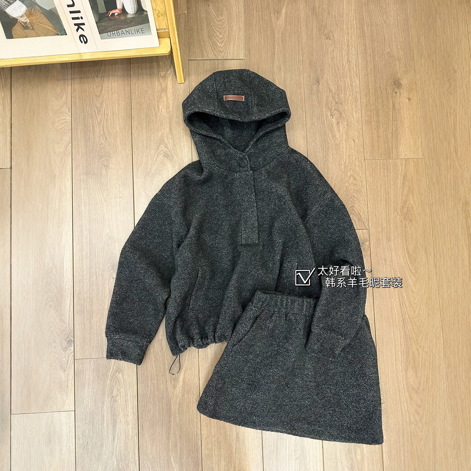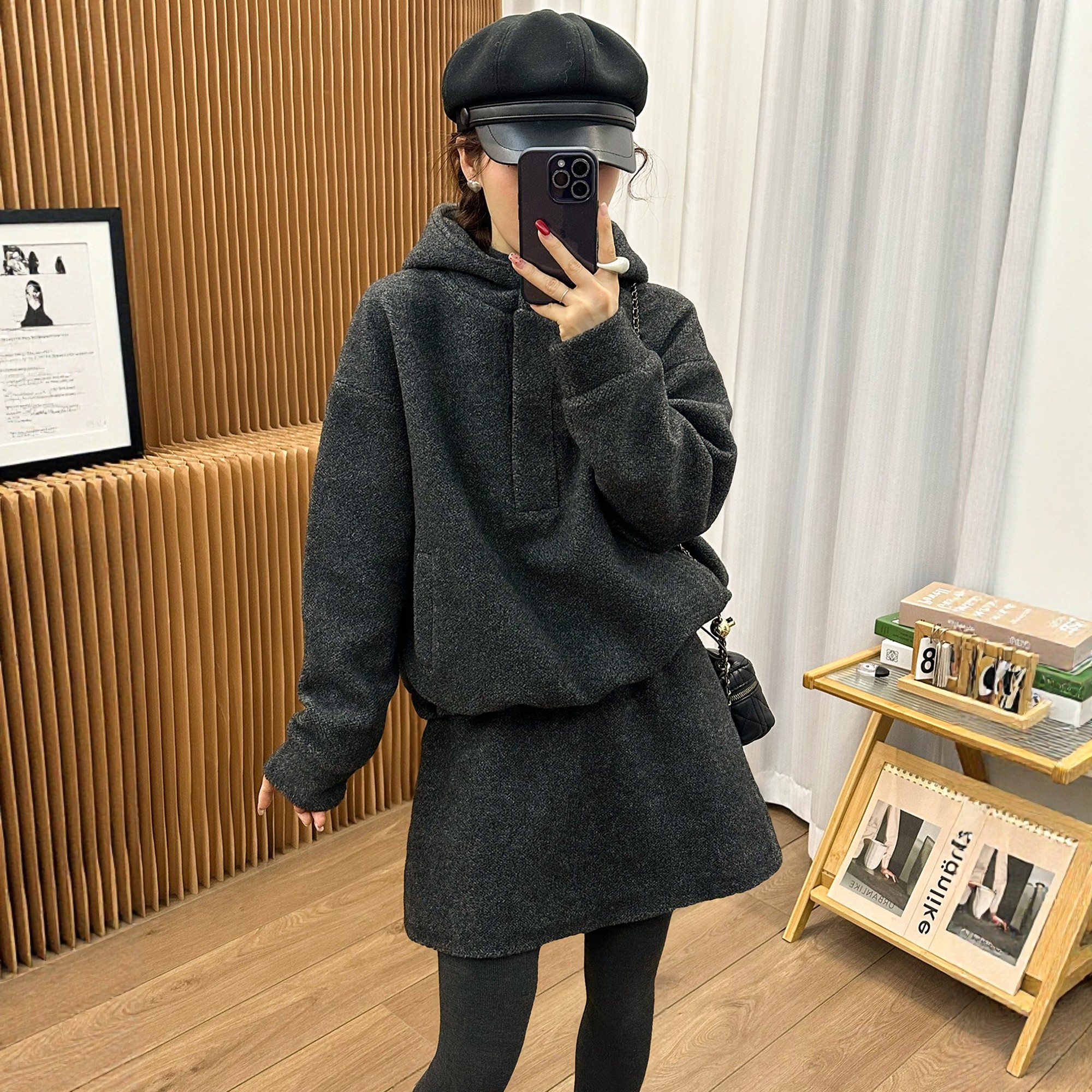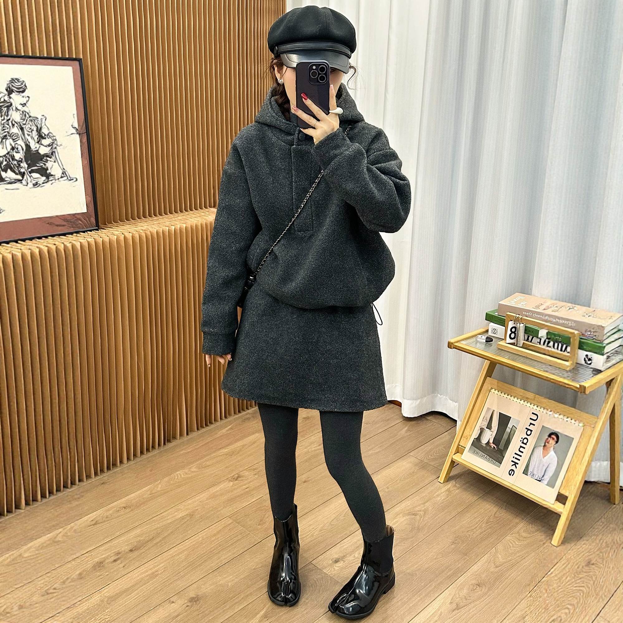 羊毛呢连帽卫衣半身裙两件套套装女欧洲站2025冬装新款欧货女装潮