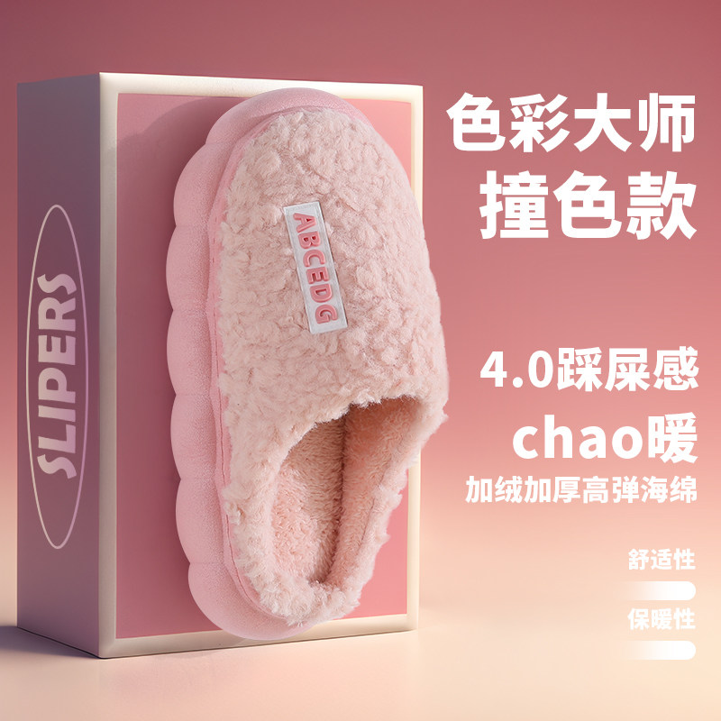 百搭棉拖鞋女冬季厚底室内外穿家居防滑棉鞋男防水加绒保暖情侣款