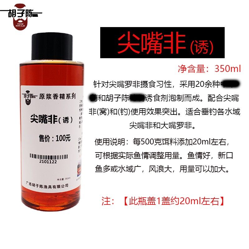 胡子陈小药尖嘴罗非配方钓鱼饵料添加剂黑坑野钓水库果酸诱鱼食剂