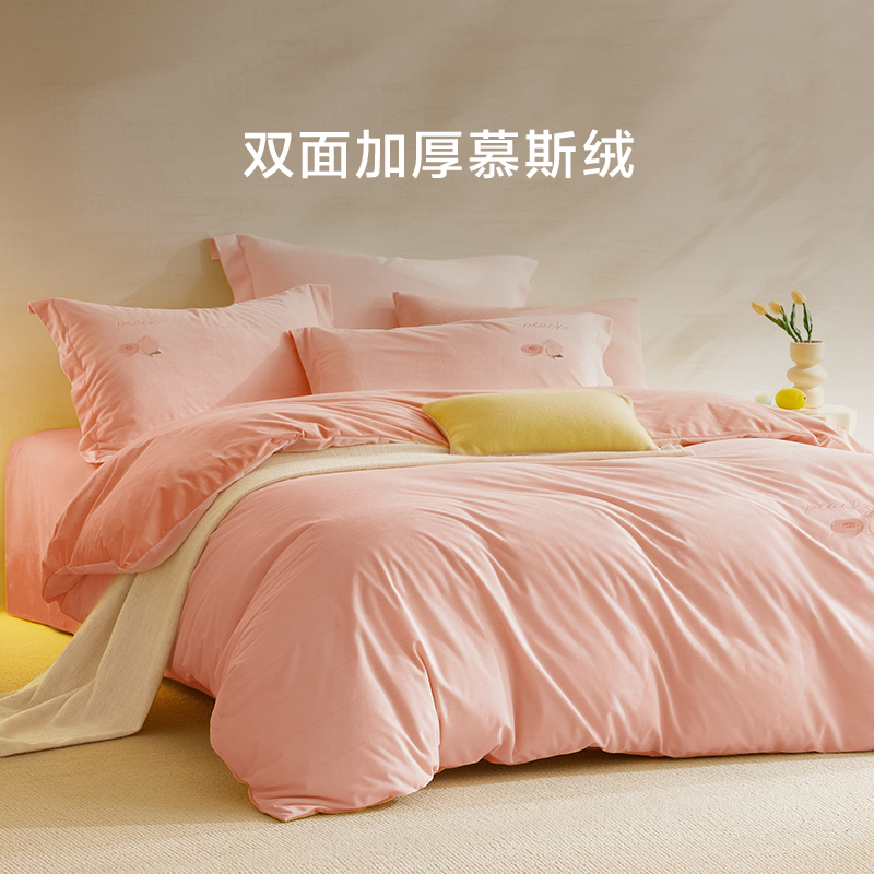 罗莱家纺慕斯绒床单被套双人撸猫牛奶绒四件套加厚保暖冬季珊瑚绒