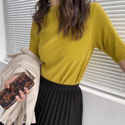 包邮!616#韩系纯色女半高领厚实中袖磨毛弹力打底衫T恤0.17KG