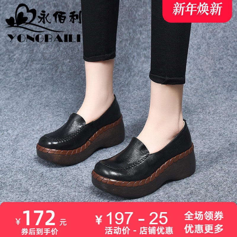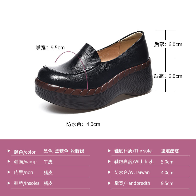 真皮圆头松糕底单鞋女2025春新款女鞋复古高跟百搭厚底英伦小皮鞋