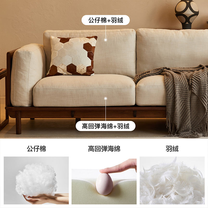 黑胡桃木沙发可拆洗日式客厅
