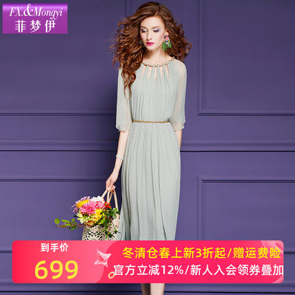 菲梦伊100桑蚕丝连衣裙女夏季法式茶歇甜美收腰顺纡真丝度假长裙