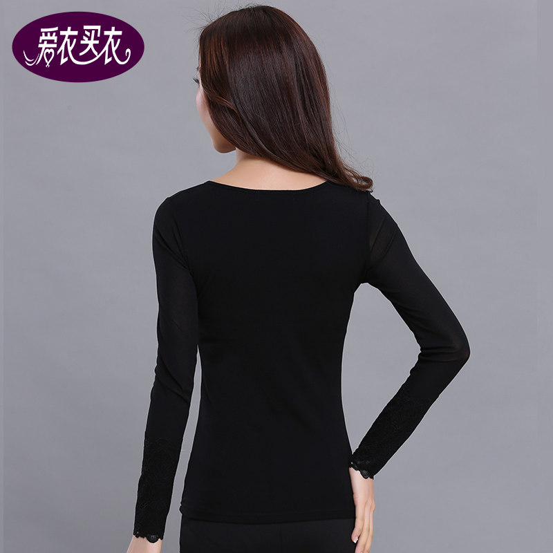 春秋新款大码加绒蕾丝网纱打底衫