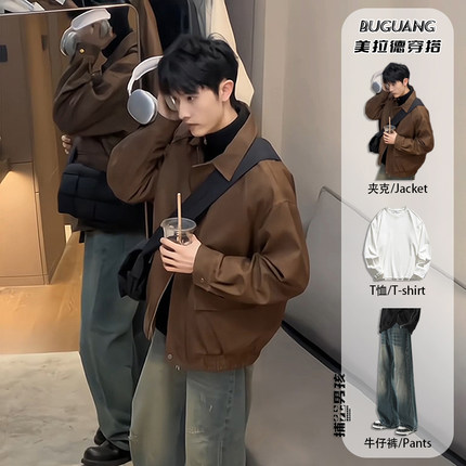 美拉德cleanfit外套男模春秋ootd穿搭夹克痞帅高级感短款垫肩皮衣