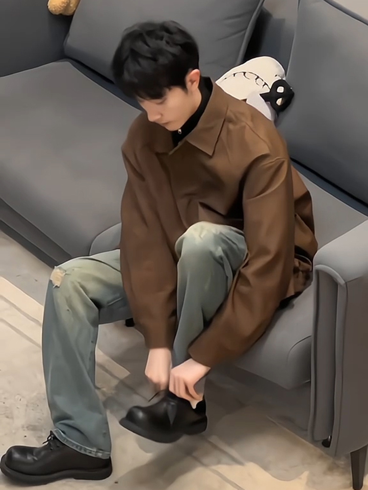 美拉德cleanfit外套男模穿搭复古