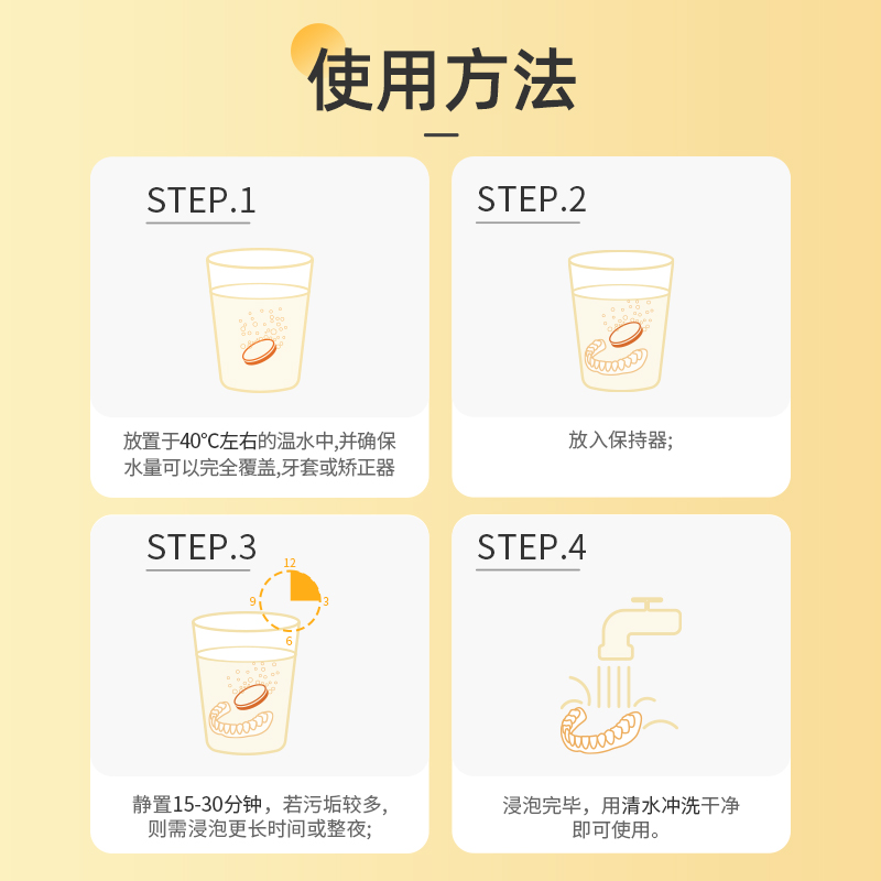 雅克菱保持器清洁片30片甜橙味正畸泡腾片洗假牙隐形牙套清洁清洗