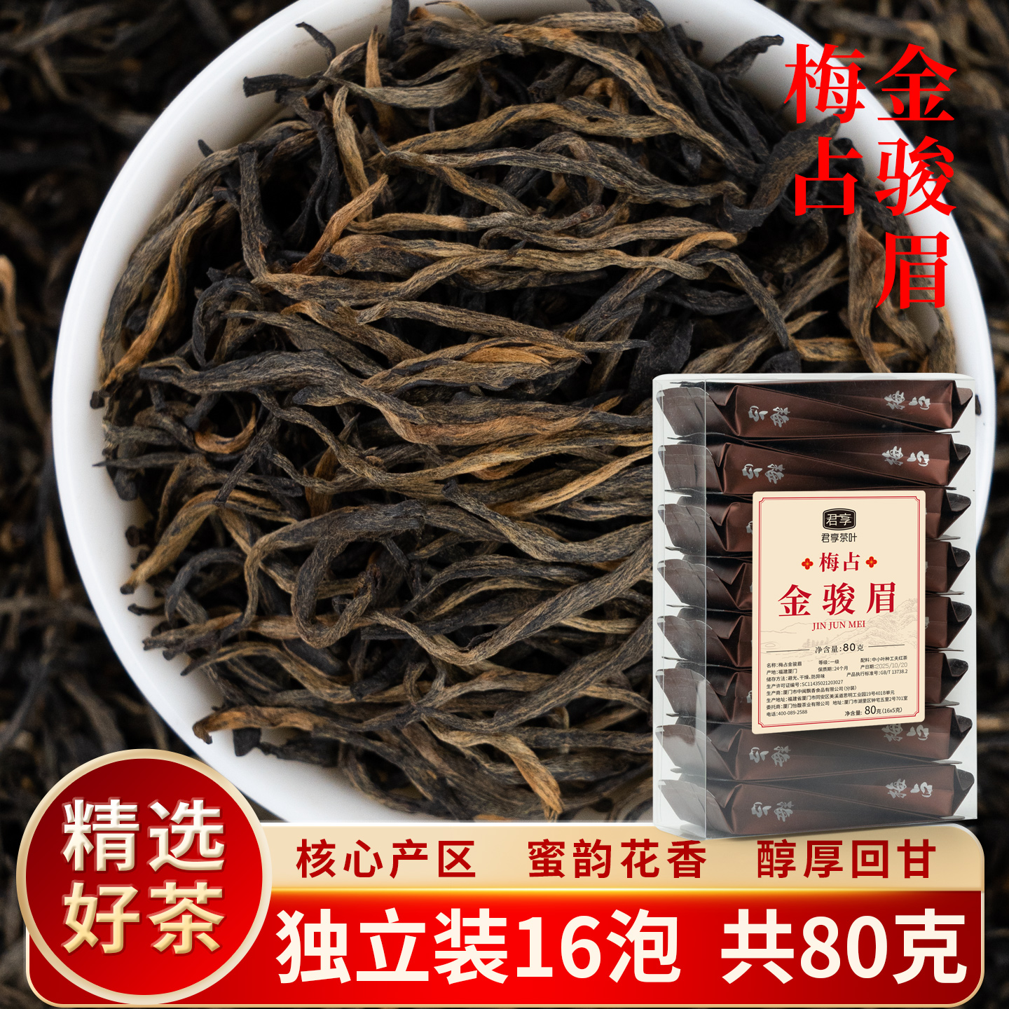 梅占金骏眉独立包装16包红茶散装茶叶蜜香型福建金俊眉