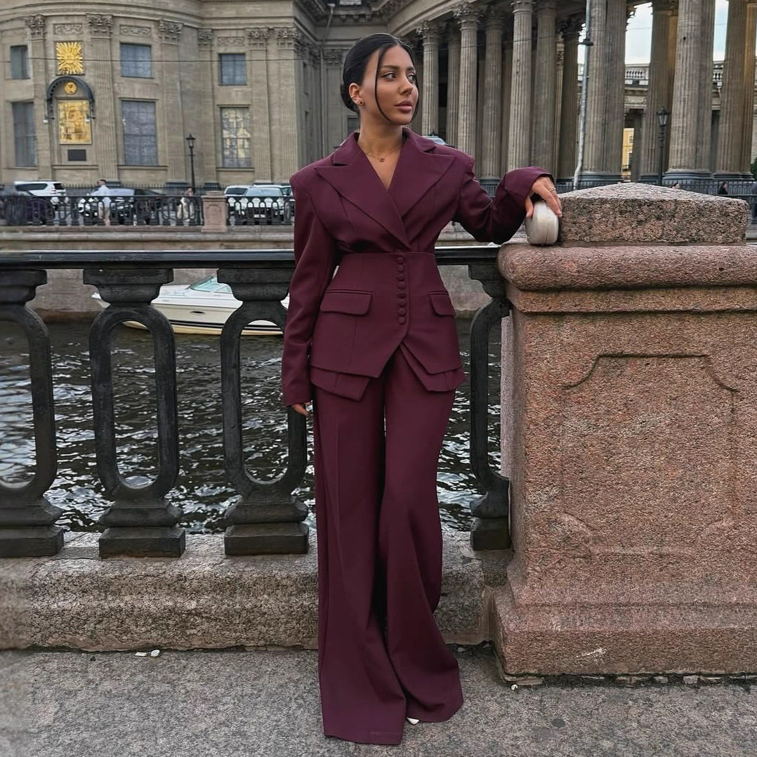 欧美外贸女装亚马逊跨境时尚秋季精品休闲小西装气质御姐V领套装